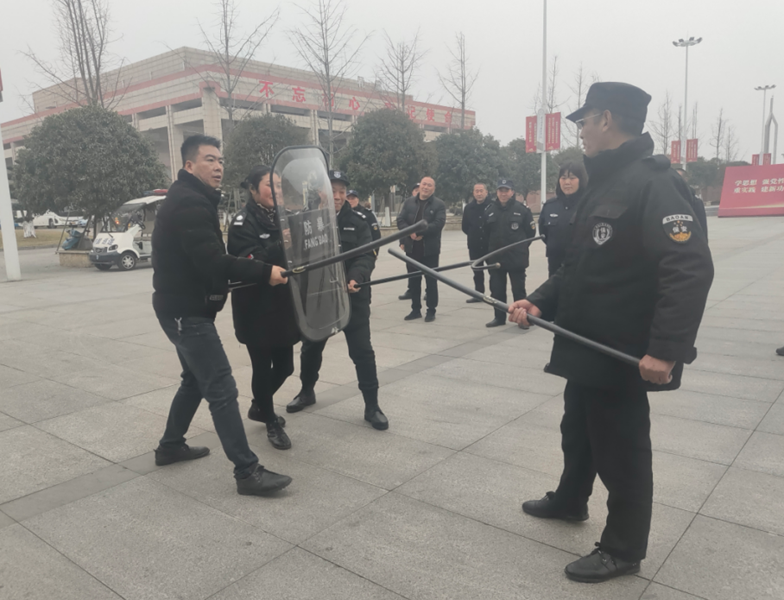 接着,治安科负责人丁焌就如何有效的反恐防暴,通过理论讲解,实践操作,对如何使用防暴钢叉、防暴盾牌等安防器械进行了系统培训。