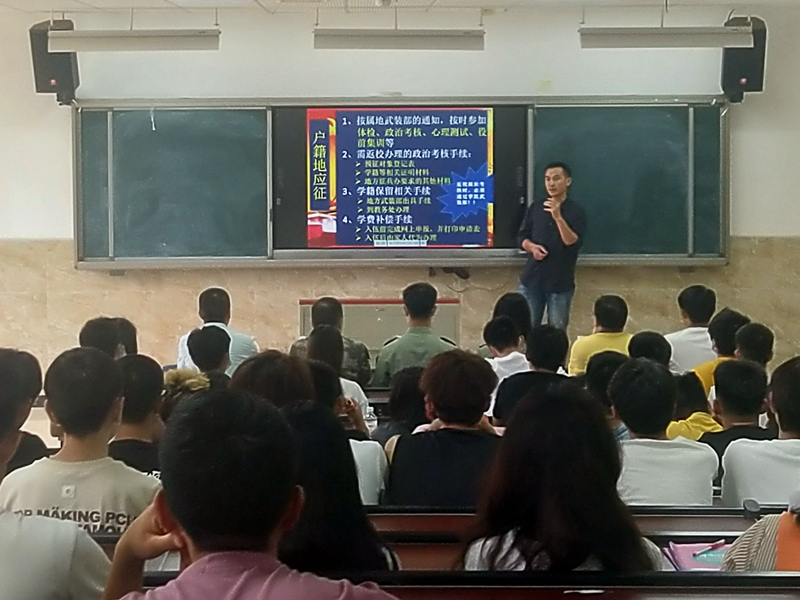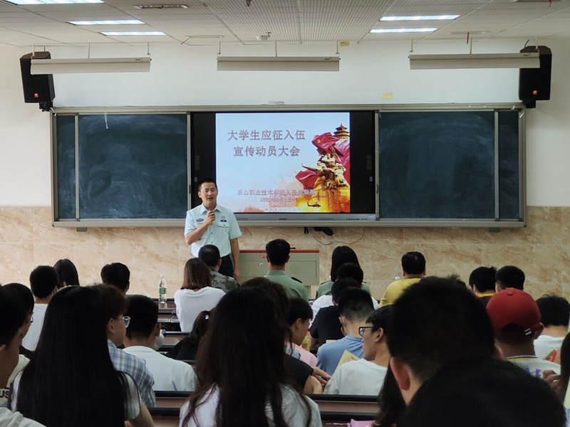 携笔从戎,绽放青春。为积极响应党和国家的号召,鼓励大学生积极参军入伍,在国防事业和军队化建设上贡献力量,sunbet申搏官方网站武装部于2022年6月1日下午13:40-4:00在教学楼2C102召开征兵宣传动员大会。会上特邀了乐山市市中区征兵办公室工作人员进行政策宣讲并现场答疑。
