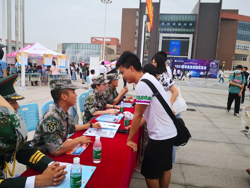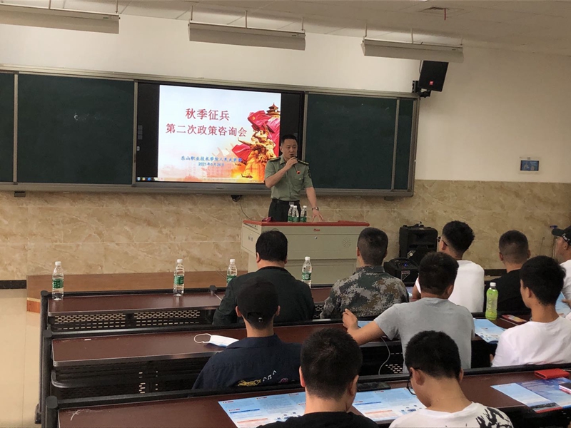 学院武装部在邀请上级兵役机关到校现场进行征兵政策宣讲的基础上,结合毕业生招聘会、推荐会,开展征兵政策咨询活动,建立相应宣传平台。与此同时,设立大学生参军政策咨询点,组织征兵工作人员、大学生退役士兵,一对一提供政策咨询。