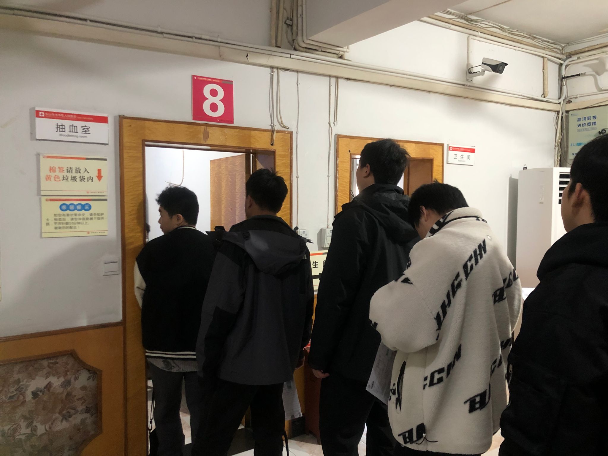 体检在乐山市市中区人民医院进行,早7:30,参检学生陆续到达医院门口集中,在现场工作人员的组织下,70余名毕业班学生有条不紊的完成了除听力、胸透和心理测试外大部分的体检项目。
