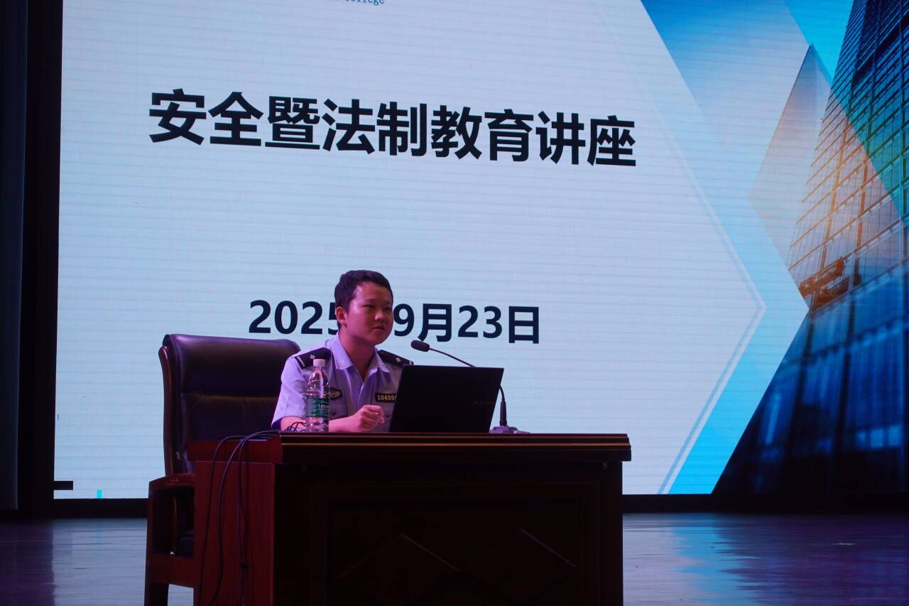 在专题讲座环节,六场讲座精准覆盖关键安全领域,突出专业性与针对性。市公安局刑侦支队三大队郑好教导员结合真实案例,系统讲解反诈知识,引导新生树牢防范意识、守住防诈安全底线;市消防救援支队郝红杰工程师以通俗化表述,深入解读火灾预防要点、初期火情处置方法及逃生自救技能;市中区禁毒教育基地宋杨民警全面剖析毒品危害,助力师生建立正确禁毒认知、提升拒毒防毒能力;市中区公安分局局苏稽派出所王政懿民警围绕校园生活场景,详细阐释诈骗预防措施与遵纪守法准则;市中区交警直属二大队刘超民警系统普及交通法规,重点强调日常出行安全注意事项;国家安全局专家深度解读总体国家安全观,切实增强新生国家安全意识与责任自觉。