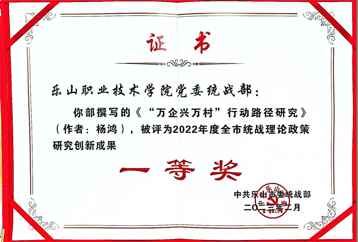 2023年2月17日,乐山市统战部长会议在市委党校召开,会议对2022年度全市统战理论政策研究创新成果获奖篇目作了通报。我系教师杨鸿撰写的《“万企兴万村”行动路径研究》获评2022年度全市统战理论政策研究创新成果一等奖。