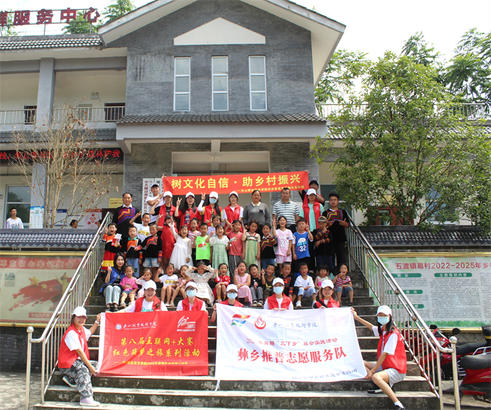 彝乡推普志愿服务是学院财经管理系近三年重点开展的社会实践活动,团队成员由财经管理系同学组成,林子琪、曹呈楠、杨鸿三位老师指导,以“树文化自信,助乡村振兴”为主题,前往峨边彝族自治县各村镇,通过深度挖掘当地红色故事,制作针对学龄前儿童使用的红色学普故事册,编制针对妇女儿童使用的疫情防控宣传册等方式,针对该地区学前和学龄儿童、留守妇女开展推普实践,现已形成独具特色的“推普+产业振兴”“推普+红色教育”“推普+防疫宣讲”等推普模式,获评2022年四川省大中专学生志愿者暑期“三下乡”社会实践活动优秀单位,受到中国青年网、四川观察、四川职教发布、乐山电视台、三江都市报等多家媒体报道。