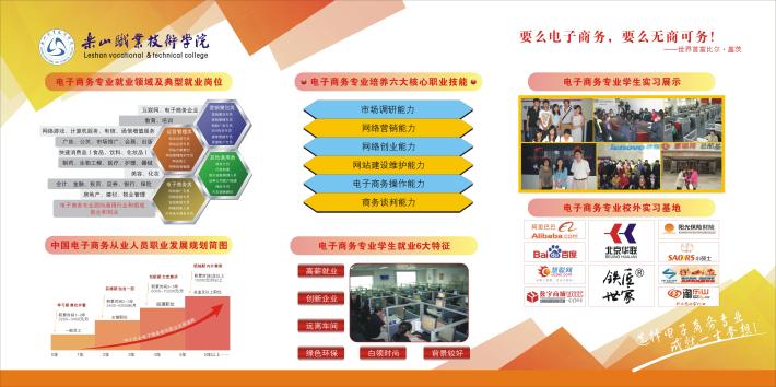 专业寄语:电子商务是各级政府最重视的战略新兴产业之一。请选择电子商务专业,用智慧和汗水创造机会,用知识和技能赢得未来,锐意进取,开拓创新。