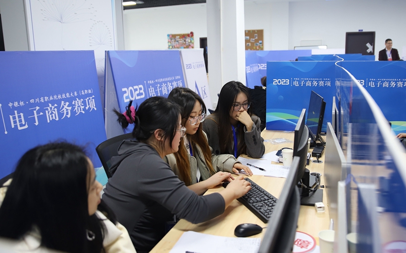 该赛项由四川省教育厅主办,竞赛内容包括电商产品开发、视觉营销和网点营销与运营推广三个模块,全面考察了选手的互联网产品开发能力、网店运营能力、供应链管理能力、数据分析能力、视觉营销能力、短视频编辑与制作能力、营销策划能力和团队合作能力。学院参赛选手在激烈的比赛中,展现出扎实过硬的专业技能和顽强拼搏、精益求精的工匠精神。