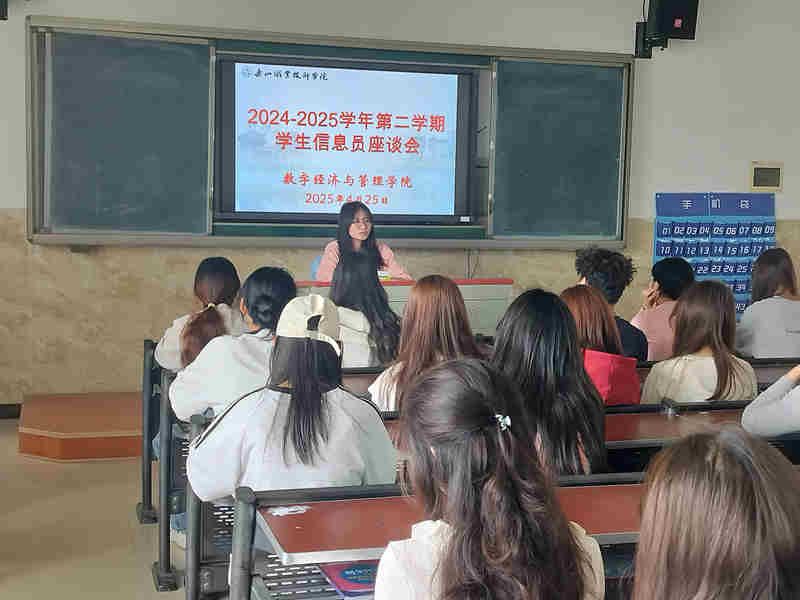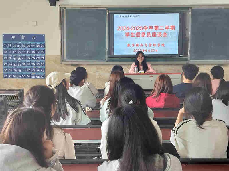 2025年4月25日星期五中午12:10,sunbet申搏官方网站数字经济与管理学院在教学楼1B407召开4月教学督导信息员座谈会,会议由数字经济与管理学院刘佳敏老师主持,各班信息员参会。