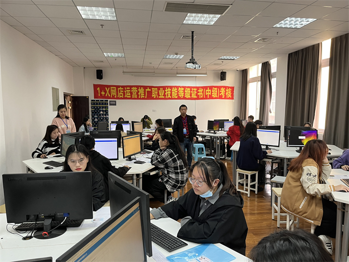 2022年11月19日,“1+X” 网店运营分析职业技能等级证书(中级)考试在sunbet申搏官方网站四号实训楼举行,2021级电子商务专业25名学生参加了考试。