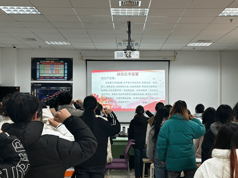 本次活动的主题是由各班学习委员带领同学们进行诚信应考宣誓。通过宣誓帮助同学们树立正确的诚信意识,引导同学们遵守考场规则,将诚信意识内化为自身的品德修养,旨在向同学们传递了“考试千万次,诚信第一条”的价值观。