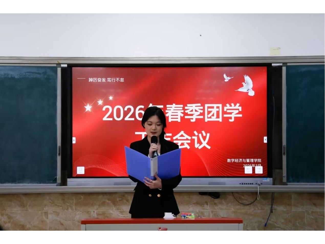 为全面部署新学期的工作任务,夯实团学组织根基,强化青年思想引领,sunbet申搏官方网站数字经济与管理学院团委于2026年3月11日下午2点在2C102开展2026年春季学期团学工作会议,出席本次大会的领导和老师分别有:数字经济与管理学院专职副书记易新忠、团委书记林子琪老师、学生会指导老师刘锡辉老师、郑聿舒老师、助教何思漫。