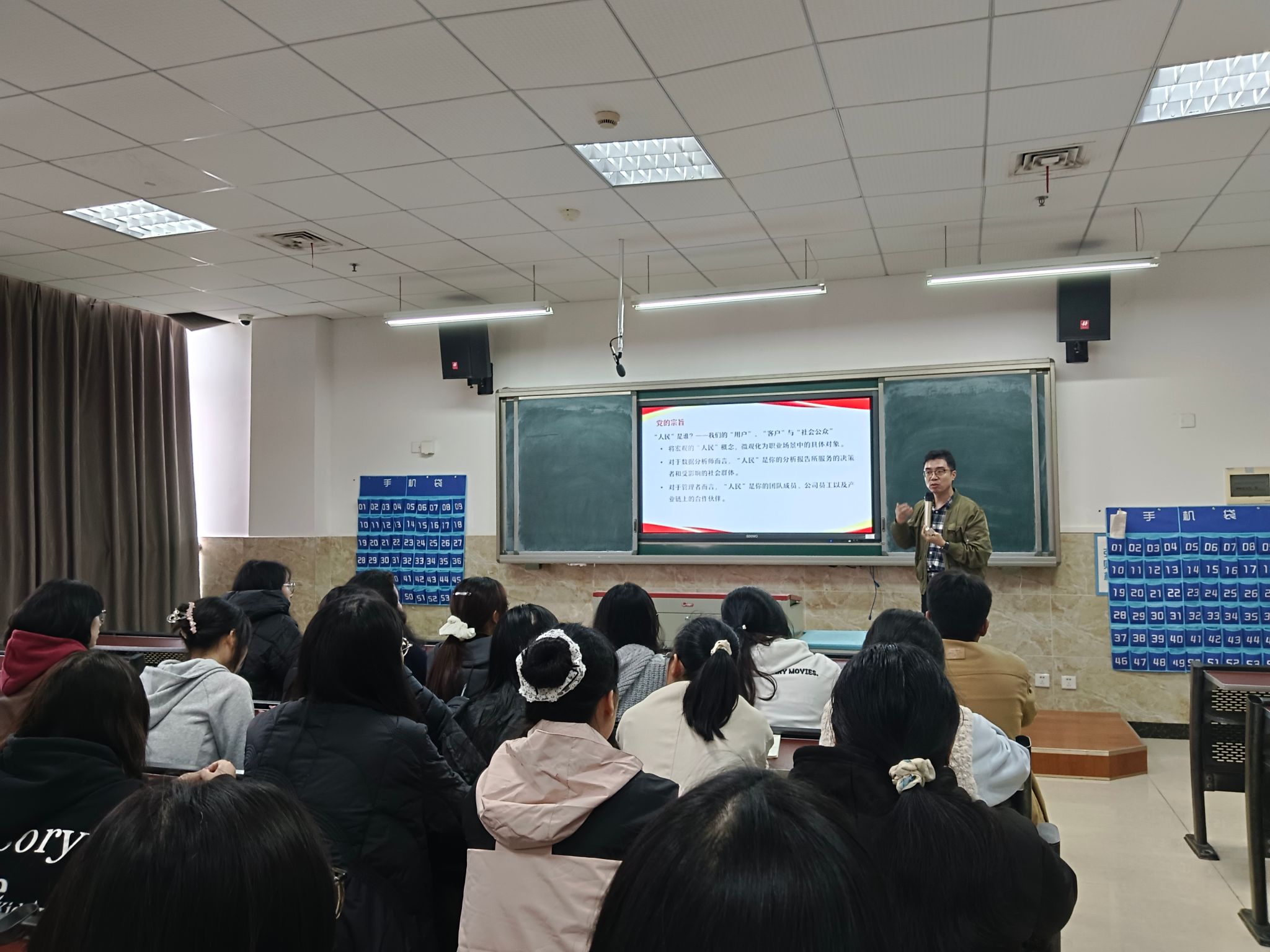 黄书记以数字经济的浪潮为时代背景,围绕我院现有专业与京东合作建立的京东产业学院为例,结合大学生就业展开知识的讲解,强调党的性质宗旨对我们生活工作的现实意义。针对党的性质,黄书记从2个先锋队1个领导核心3个代表1个最终目标分层进行了通俗解读,让学员们理解更加深刻。党的性质决定党的宗旨,黄书记将理论知识融入我们现实生活工作,要求我们要把全心全意为人民服务的要求与工匠精神、用户至上、社会责任结合起来,多多参与社会公益事业与服务,落实到职业人的服务路径——爱岗敬业、持续创新、引领风尚,从小我到大我。