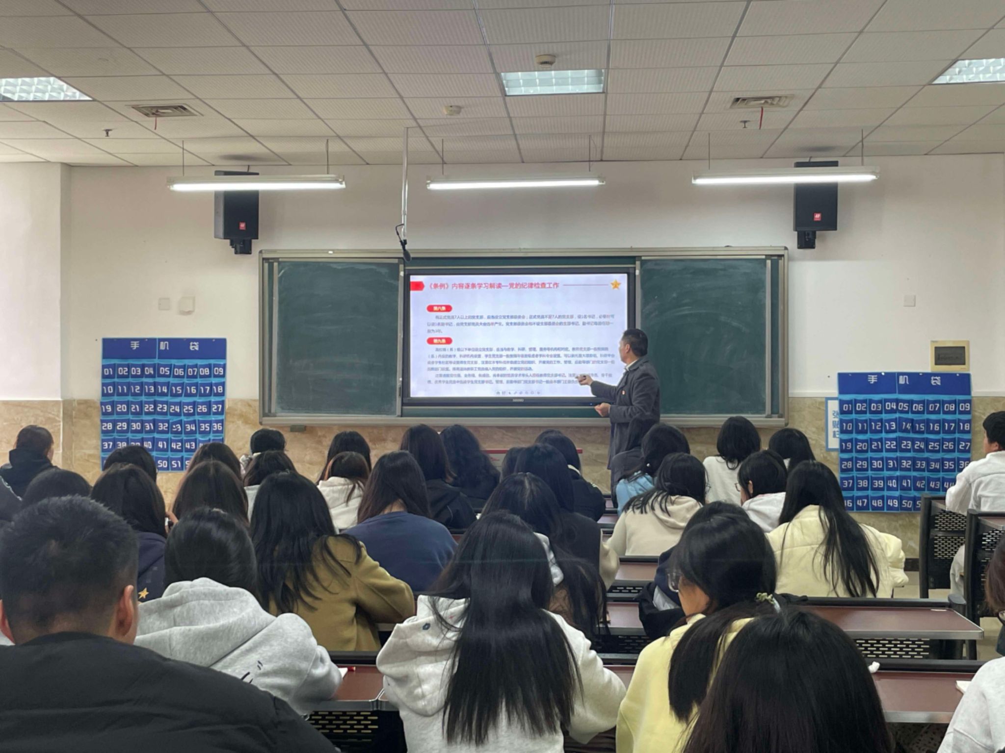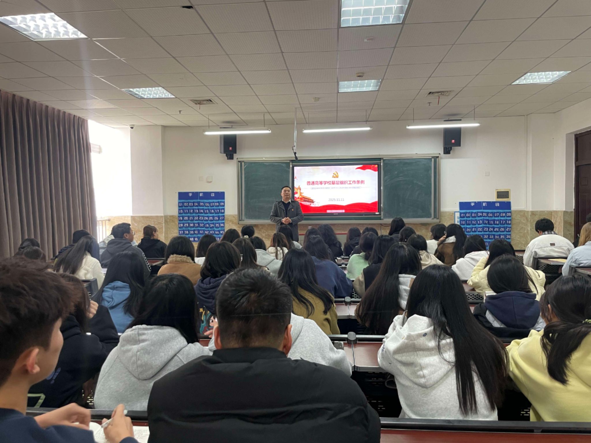 2025年11月11日中午13:00,数字经济与管理学院分党校2025年秋季培训班在1B404教室开展第五讲,由数字经济与管理学院党总支纪检委员、教工一支部书记、副院长何瑞主讲“学习高校基层组织工作条例”。