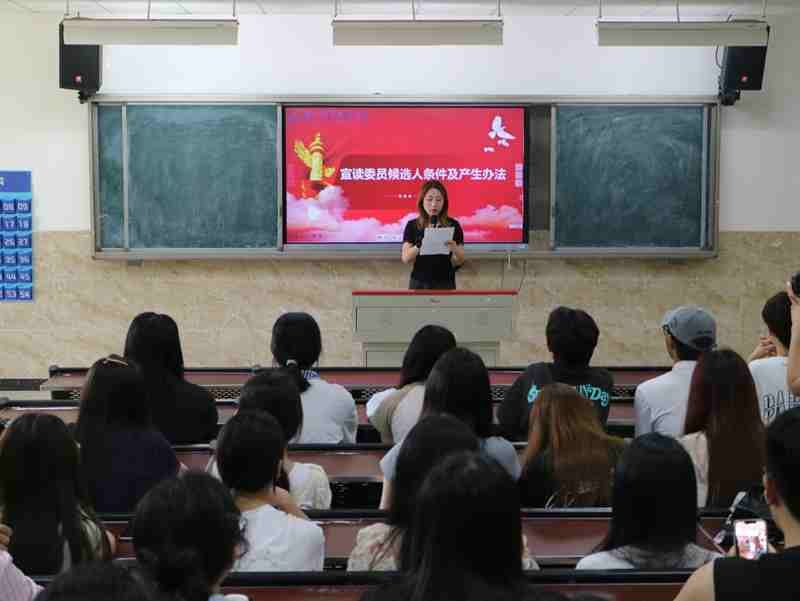 大会在庄严肃穆的国歌声中拉开帷幕。2023级团委副书记何雨彤主持此次会议,首先由易新忠书记致辞,易书记对团委工作给予了充分肯定,并向在场同学提出了期望和要求。紧接着林子琪老师宣读团委委员候选人条件及选举办法,随后各位候选委员依次进行自我介绍,在场团员代表通过QQ群进行投票,最终选出八位团委委员代表并进行合影留念。最后,全体参会代表齐唱共青团团歌,大会到此结束。