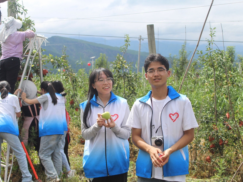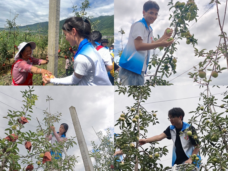 考察团在曹呈楠、林子琪两位老师的指导下,跟随园区负责人,深入产业园区内参观调研,与当地果农面对面交流,参观了解越西苹果、葡萄种植技巧。同学们实地体验采摘过程,并结合自身专业,通过“直播”的方式,帮助果园进行销售,以实际行动助力乡村产业振兴。