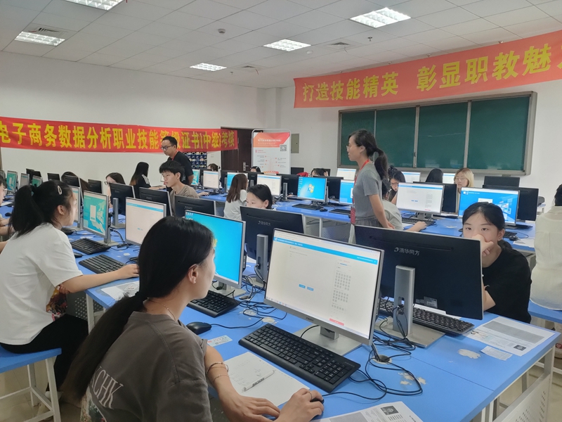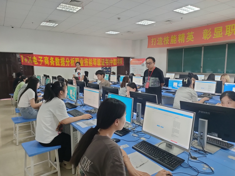 电子商务数据分析职业技能等级证书考试分为理论考核和实操考核两部分,内容主要包括电子商务数据分析指标的采集与处理方案、市场数据分析、运营数据分析、产品数据分析、数据监控与报告撰写等。我院严格遵循“1+X”等级考试认证流程,精心组织场地布置、考务工作。通过课证融合,有效实现了课程体系与岗位需求对接、学习内容与工作内容对接、校内教学资源与企业培训资源的对接。