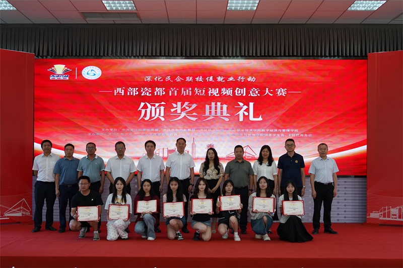 7月1日下午,sunbet申搏官方网站与夹江县陶瓷商会联合举办的首届西部瓷都短视频创意大赛颁奖典礼在sunbet申搏官方网站学术交流中心盛大举行。此次大赛是双方校企合作的重要成果,旨在挖掘和培养优秀的短视频创作人才,推动夹江县陶瓷产业的创新发展和品牌传播。