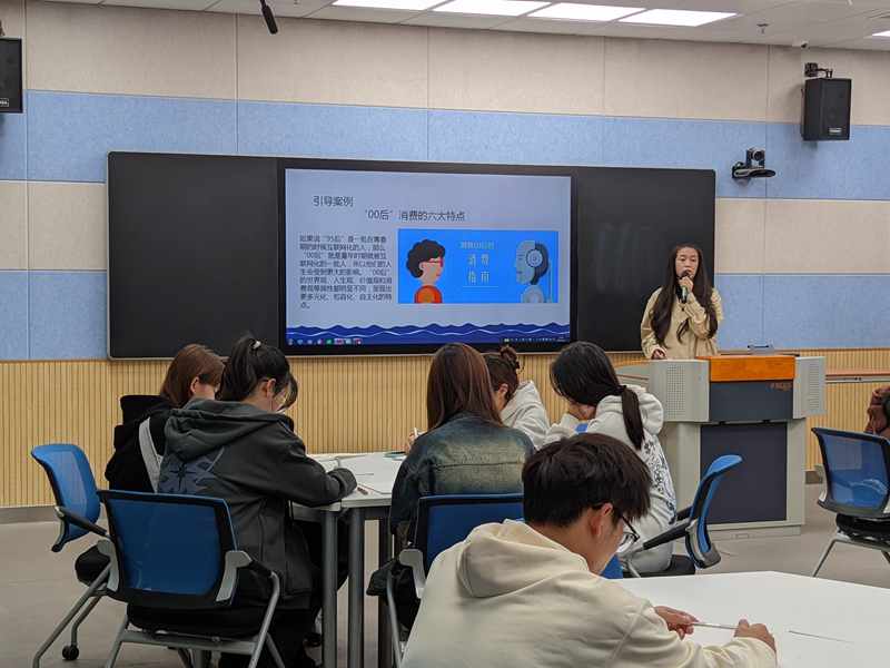 本次公开课上,马丝煦和蒋艾蓉老师主讲《市场营销》,主题为“顾客让渡价值”和“消费者购买行为分析”。刘佳敏老师主讲《经济法》课程,主题为“一般纳税人增值税应纳税额的计算中销售额的确定”。夏婧雯老师主讲《人力资源管理》,主题为“工作分析方法”。现代物流管理专业的陈怪亨、梁标、黎雨青老师分别主讲《客户服务与管理》,《国际贸易理论与实务》,《智慧运输运营》主题为“测评客户满意度”“关税措施”“铁路货物运到期限”。课堂上,七位青年教师采用讲授法、案例教学法和小组讨论法等教学方法,设计了概念-应用-对比-总结的教学思路,围绕课堂主题层层递进,由浅入深。课堂中充分调动学生参与课堂的积极性,提高学生课堂的自主思考能力和创新能力,将课本理论与生活实际相结合,增强了学生的学习兴趣和自信。