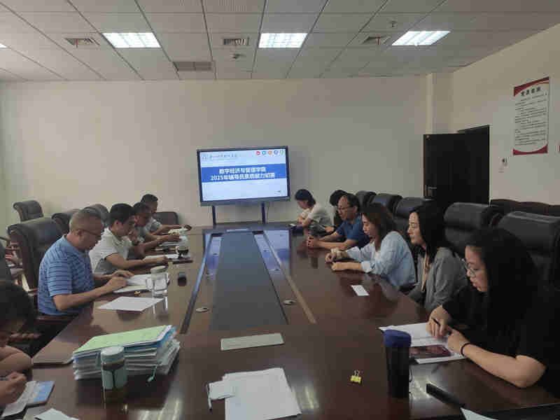 2025年5月28日,数字经济与管理学院在二号教研楼110会议室开展辅导员职业能力比赛。数字经济与管理学院党总支书记黄泓轲、院长邵其会、专职副书记易新忠、副院长何瑞参会,全体专兼职辅导员参加比赛,比赛由易新忠主持。