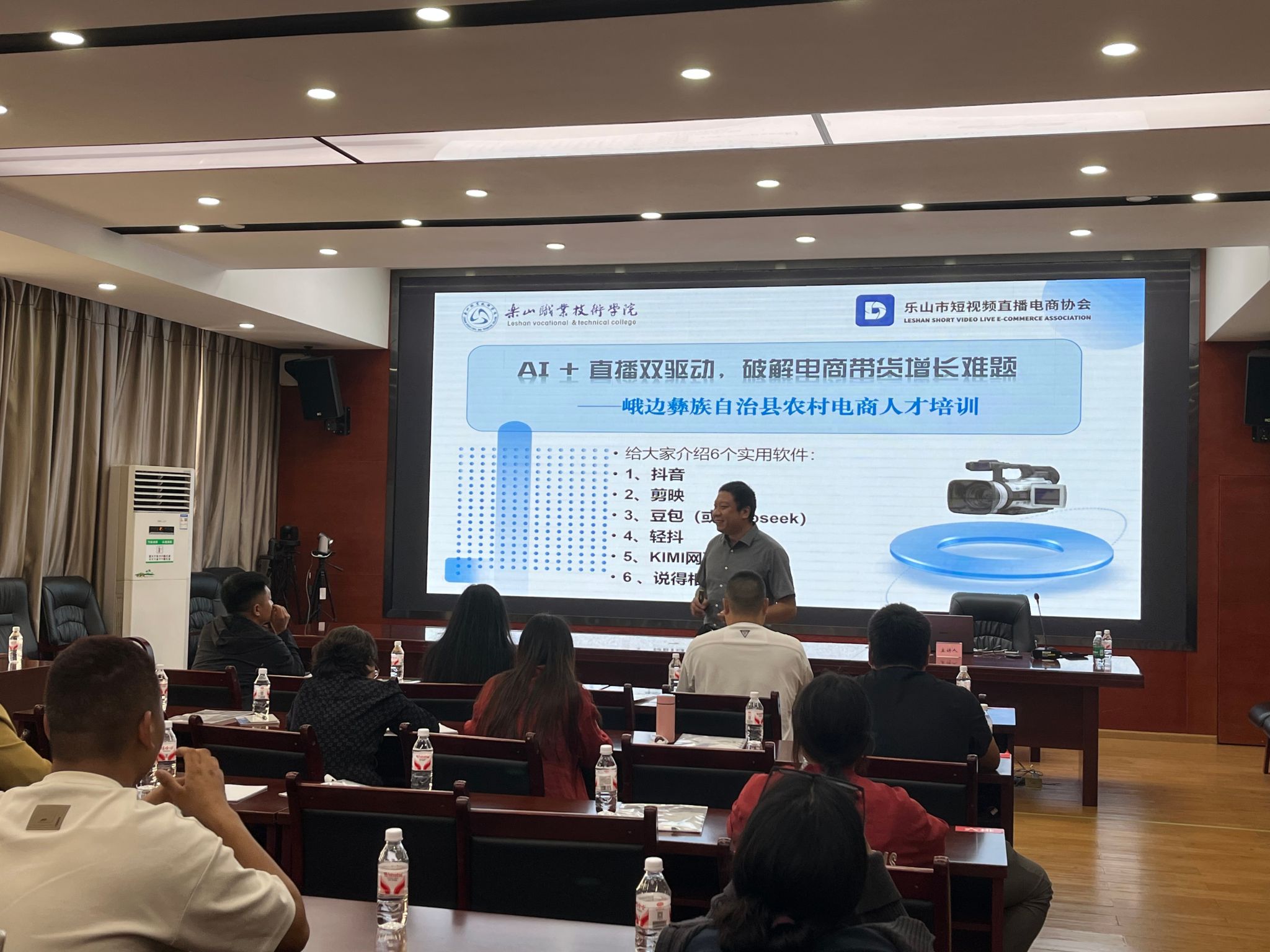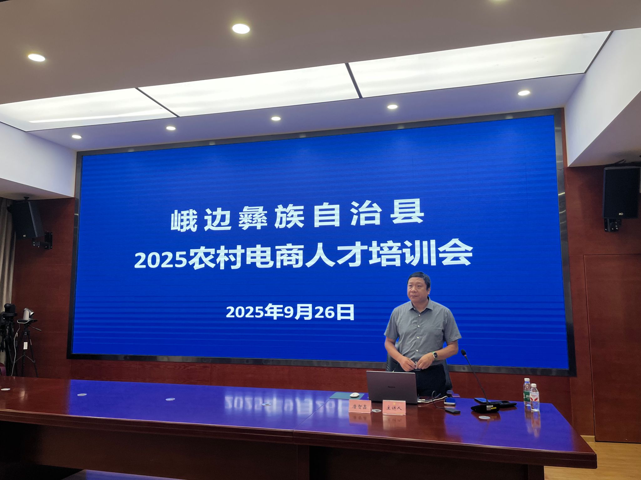 9 月 26 日,sunbet申搏官方网站数字经济与管理学院唐智鑫新媒体电商创新工作室,赴峨边彝族自治县开展 2025 年农村电商人才专项培训,为当地 60 余名乡镇、村干部授课。培训结合乡村电商实际需求,将 AI 工具实操、短视频创作、直播带货等转化为实用课程,还针对峨边农特产 “生态、地域特色” 定制 AI 方案,指导学员拍 “田间直采” 短视频、设计 “农产故事化” 直播脚本,助力峨边竹笋等农特产品外销,为乡村振兴注入数字活力。