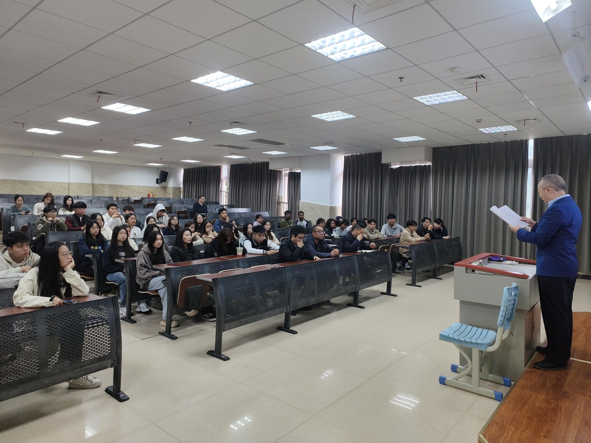 会上,院领导聚焦留学生管理关键环节部署工作:解读国家相关政策,强调留学生保险的强制性与重要性;细化离乐报备纪律与规范,强调流程时效性;明确校纪校规,特别强调严禁在宿舍使用大功率电器、刀具等违规物品。同时,院领导鼓励留学生参与校园活动、加强与中国学生交流,感受中华传统文化与乐山历史底蕴。