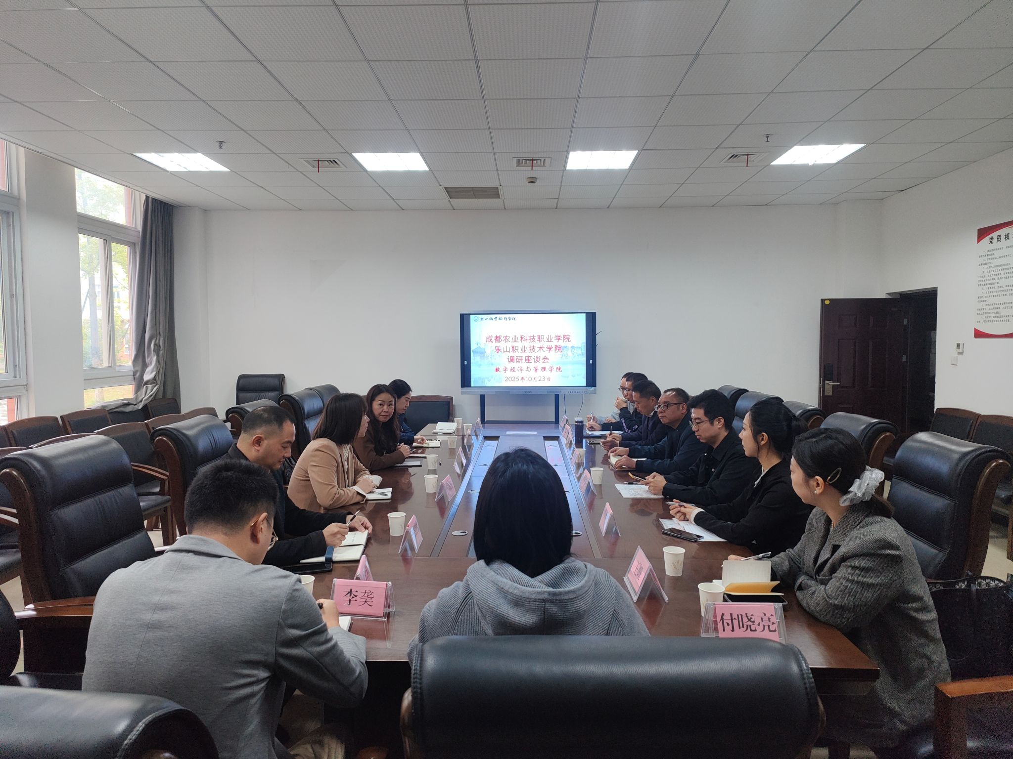 10 月 23 日上午,成都农业科技职业学院经济贸易学院副院长应苗红一行10人赴申搏官网数字经济与管理学院交流,数字经济与管理学院党总支书记黄泓轲、院长邵其会、副院长何瑞及京东数字商务产业学院相关同志陪同参观。