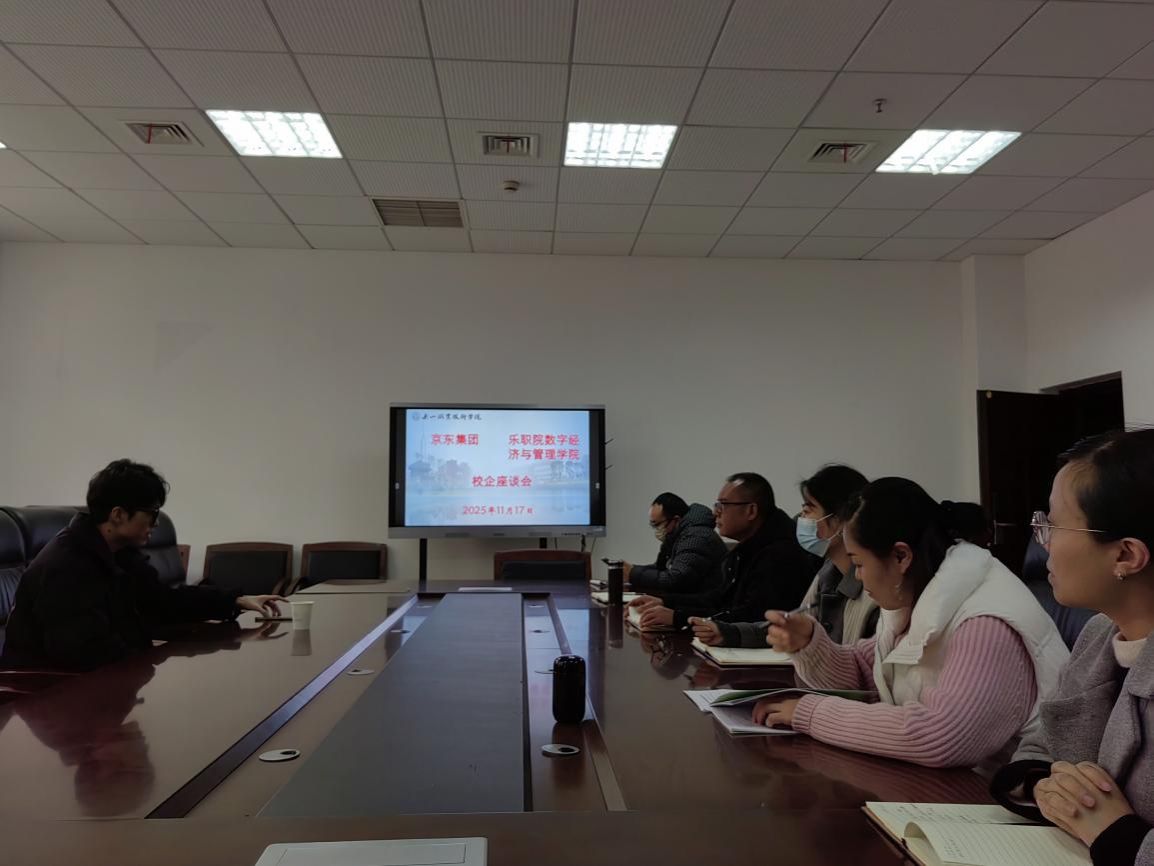 座谈会上,京东集团校企合作部负责人对我院办学水平和毕业生质量给予高度认可和评价,并介绍了企业的发展概况、企业文化、员工培养体系、人才需求岗位等情况。京东集团校企合作部负责人表达了与我院的深厚渊源以及在校企联合培养人才、有效开展校园招聘等方面进一步合作的愿望。京东集团校企合作部负责人表示,希望在以往与零售行业客服领域合作的基础上,进一步扩大合作范围。未来,双方将推动合作常态化,并拓展至保险、消费金融等业务板块。