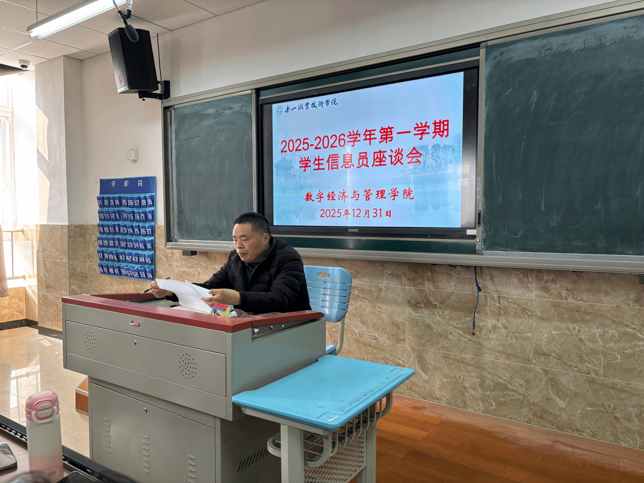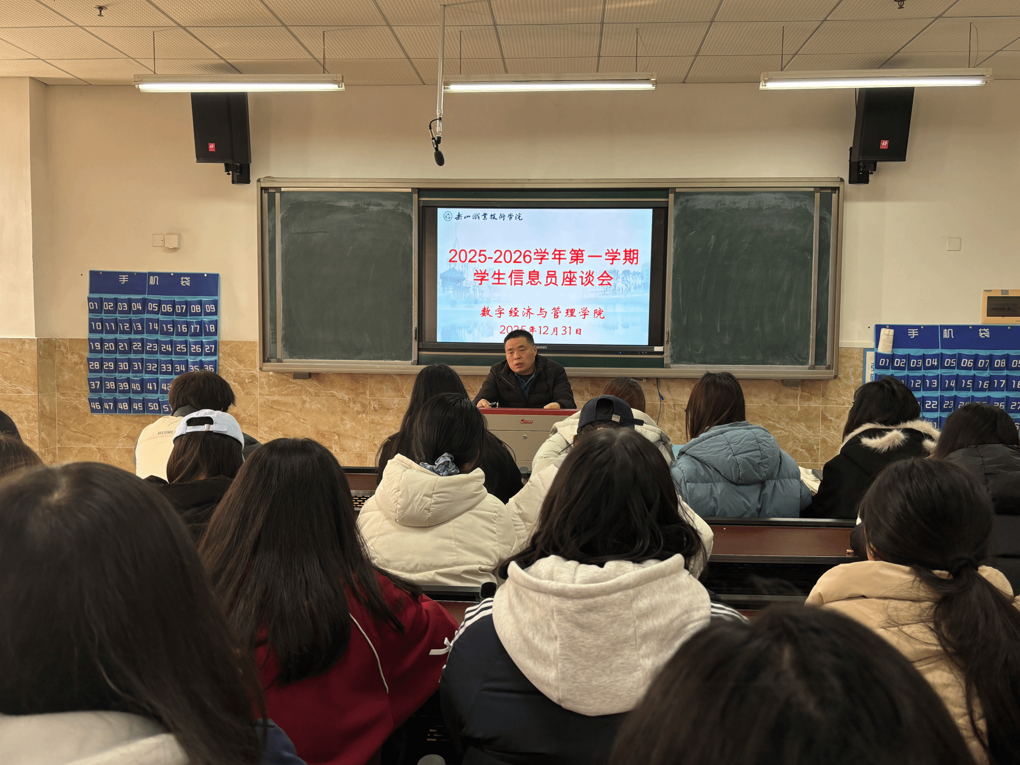 2025年12月31日中午12点,sunbet申搏官方网站数字经济与管理学院在教学楼1B404召开12月教学督导信息员座谈会,数字经济与管理学院何瑞副院长、督导干事刘佳敏老师及各班信息员参与此次会议。