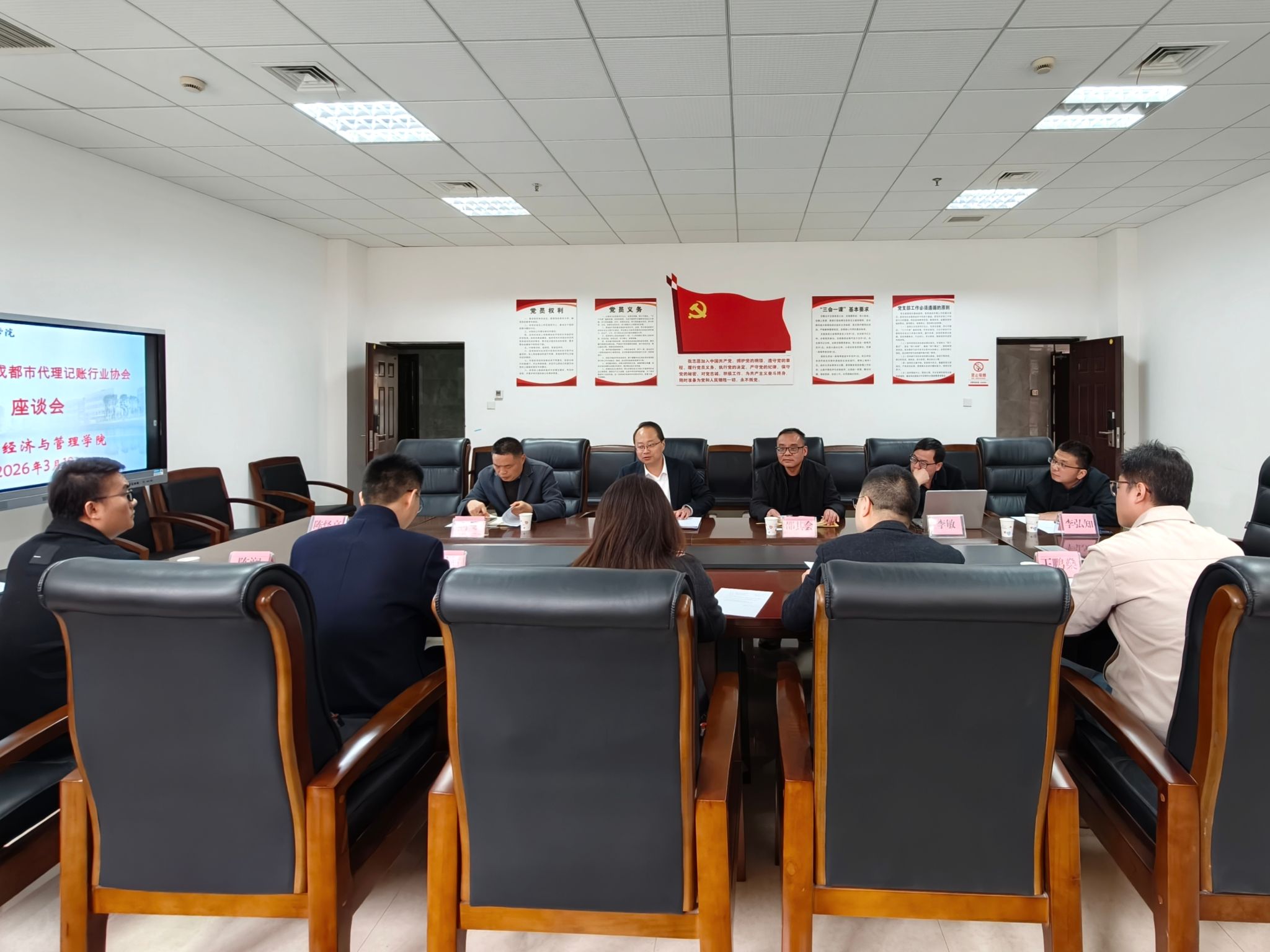 2026年3月19日下午,成都市代理记账行业协会秘书长阳昱杭一行到访sunbet申搏官方网站,就深化校企合作、共建智慧财税产业学院、推动毕业生高质量就业等议题开展交流座谈。学院党委副书记张佳,数字经济与管理学院院长邵其会及相关教师参加座谈会并陪同调研。