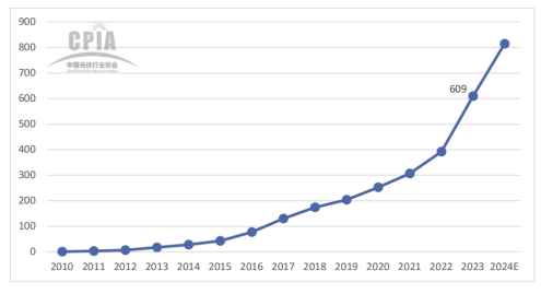图2  2010-2023年全国太阳能光伏发电装机累计容量(单位:GW)
