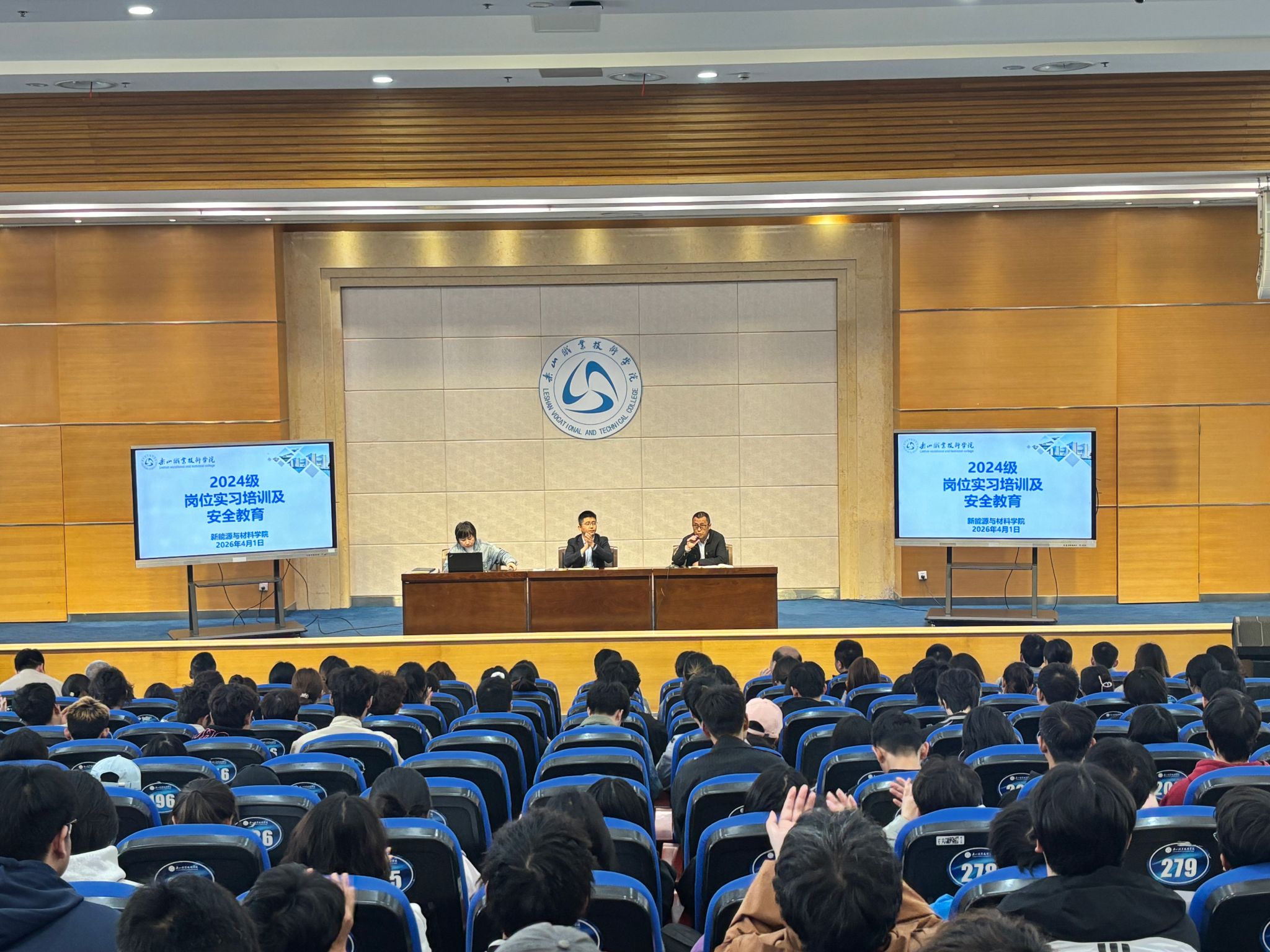 为强化我院学生专业实践能力,明确实习工作要求,确保2024级学生实习工作规范、有序、高效推进,2026年4月1日,新能源与材料学院在图书馆学术报告厅隆重召开2024级实习动员大会。学院党总支书记、院长邓盼盼,专职副书记邓丰,副院长杨岍,2024级全体学生、全体辅导员及实习指导老师出席本次大会,会议由副院长杨岍主持。