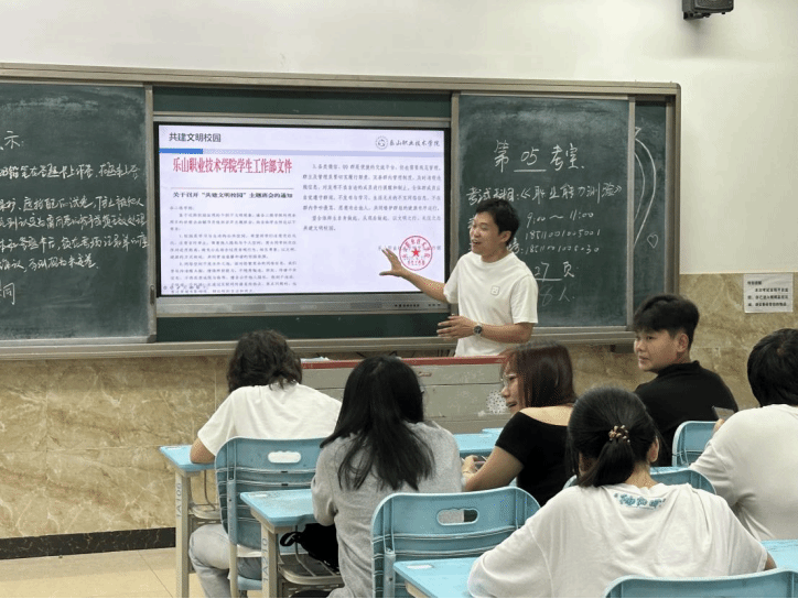 为深化学生文明素养教育,新能源与材料学院于2025年6月29日晚在 1 号教学楼组织开展“共建文明校园”主题班会。全体在校班级辅导员和学生参加。