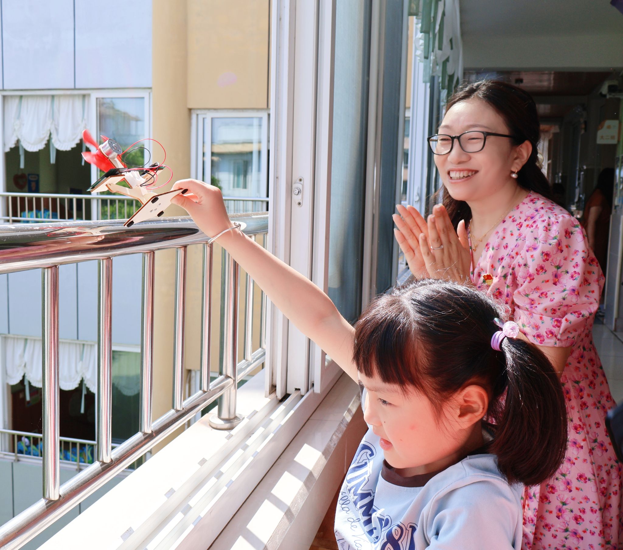 在绿色科技环节,宣讲团采用生动视频与童趣讲解,为幼儿科普太阳能、风能、水能等再生能源的基本原理。孩子们在师生的指导下组装太阳能小车、直升机模型,在实践中体验太阳能转化为动力的奇妙感受,在幼小的心灵中种下科学探索的种子。