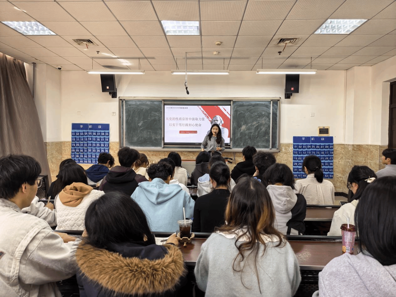 为进一步提高党员培养发展质量,加强入党申请人思想政治教育,帮助青年学子深刻领会党的核心理论内涵,端正入党动机,夯实向党组织靠拢的思想基础,新能源与材料学院第四期党的基本知识培训第二讲《从党的性质宗旨中汲取力量 以实干笃行践初心使命》于2026年3月26日在教学楼1B107开讲。本次培训邀请马克思主义学院王琴老师围绕“党的性质、最高理想、根本宗旨、指导思想和初心使命”等几大核心内容展开系统授课。