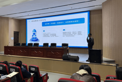 讲座中,潘绍飞以 “以青春之名 扬技能之帆 赴乐职之约” 为主题,解读国家职业教育系列政策,阐明职业教育与普通教育的同等重要地位,结合行业数据展现技能人才的旺盛市场需求;同时介绍了sunbet申搏官方网站的办学实力,以及人工智能学院的专业设置、实训条件、就业升学等核心情况。张琦聚焦现代移动通信技术专业,从专业前景、人才培养模式、实训资源、竞赛成果及毕业生就业升学路径等方面展开讲解,让学生全面了解专业学习与发展优势。