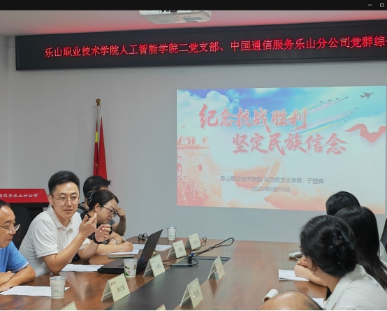 2025年9月10日下午,人工智能学院二支部全体党员走进中通服乐山分公司与该公司党群综合党支部全体党员联合开展了“纪念抗战胜利 坚定民族信念”的党建交流活动。