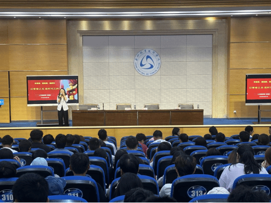 讲座初始,人工智能学院党总支书记王明清从如何加强学习、坚定理想信念等方面对2025级新生提出了建议和要求。接着,人工智能学院党总支副书记徐思群以“学思想、重实践、建新功——以青春之名 赴时代之约”为题,从如何在坚定理想信念上下功夫、在厚植爱国主义情怀上下功夫、在加强品德修养上下功夫、在增长知识见识上下功夫、在培养奋斗精神上下功夫、在增强综合素质上下功夫等六个方面对学生进行启发和建议。
