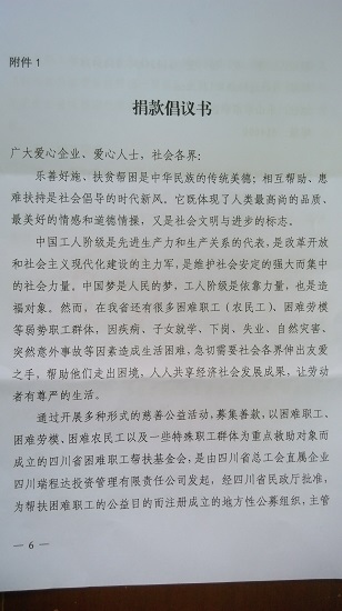 关于认真开展四川省困难职工帮扶基金会善款募集活动的通知