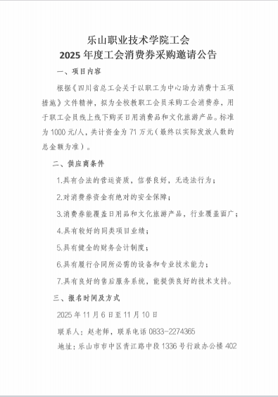 sunbet申搏官方网站工会 2025年度工会消费券采购邀请公告
