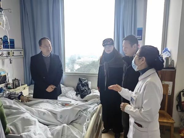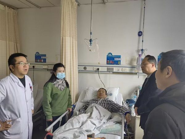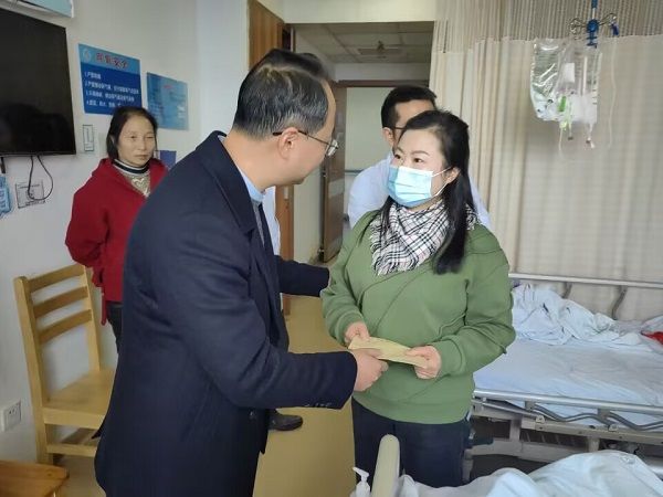 在病房中,张佳详细询问了解了黄海燕的病情及治疗情况,鼓励黄海燕老师悉心调养,积极配合治疗,保持乐观心态,争取早日康复。对黄海燕生病期间一直承担其照料任务的黄海燕妹妹也给予关心慰问。