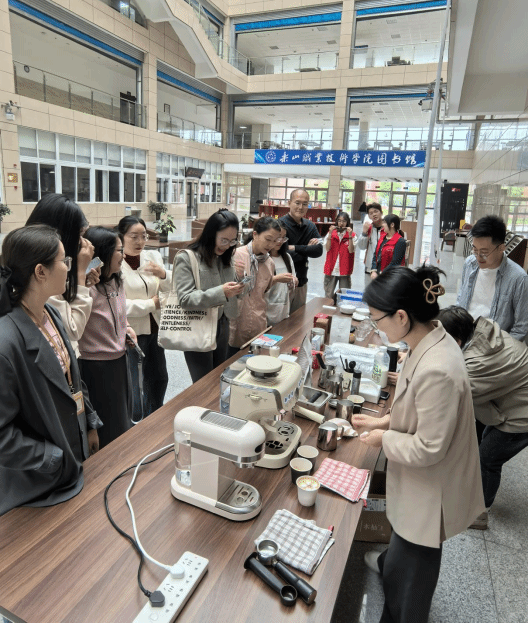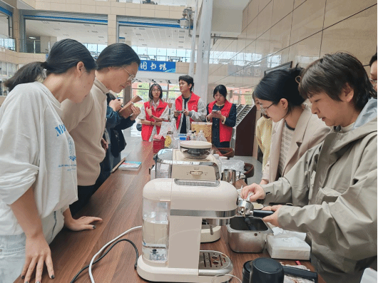 活动期间,学校领导亲临现场,为活动增添了光彩。在“共萃美好”主题日,咖啡协会的老师们精心组织了一场咖啡豆筛选小游戏。参与者们在欢声笑语中深入了解咖啡豆的筛选过程,学习到咖啡知识。随后的咖啡品鉴活动更是将活动氛围推向高潮,教职工们有机会品尝到来自世界各地、不同烘焙程度的咖啡,深入领略咖啡的多样性和独特风味,仿佛开启了一场舌尖上的环球之旅。
