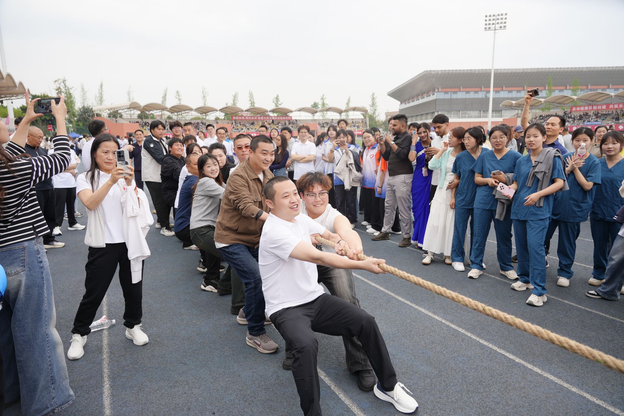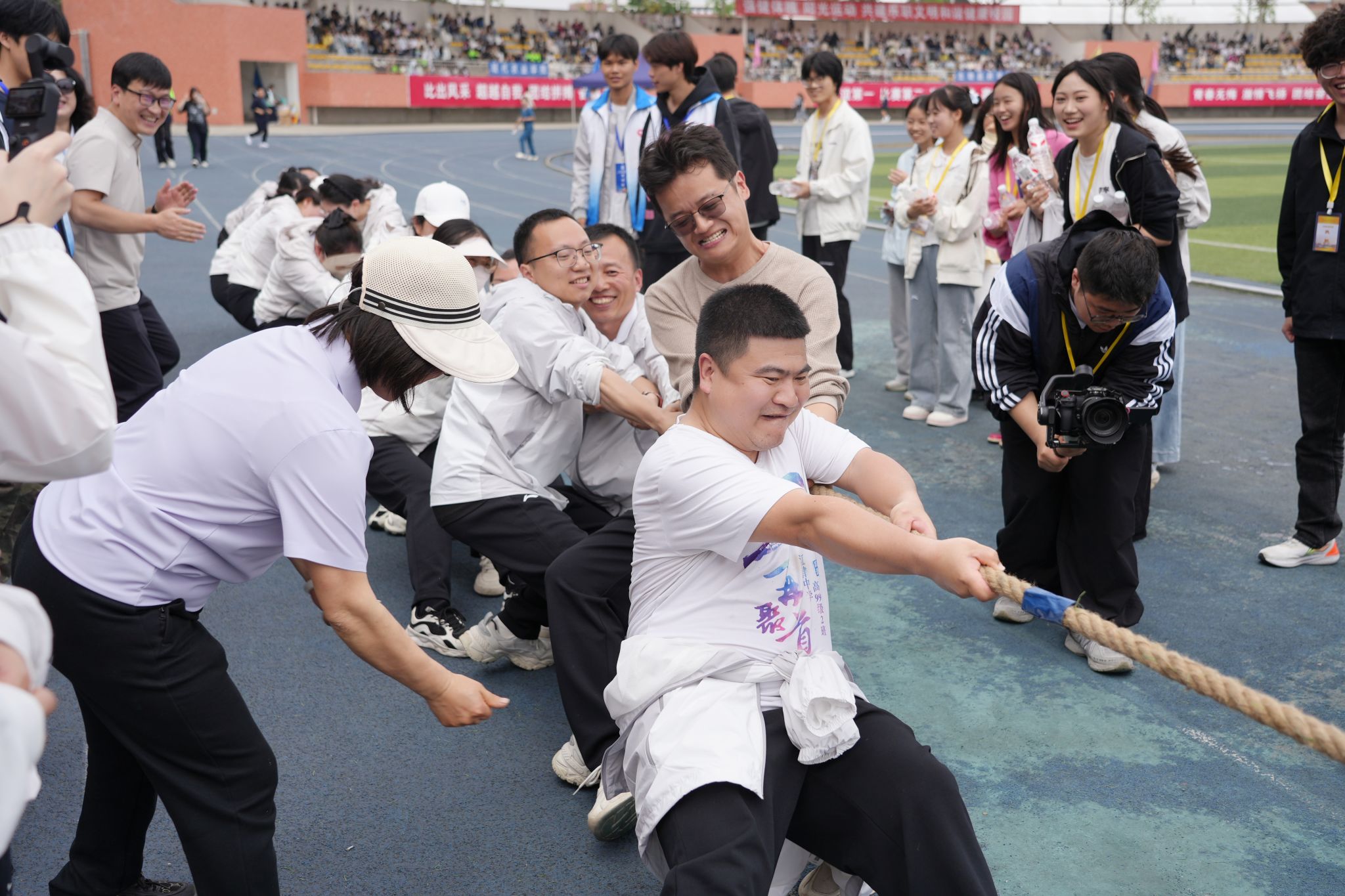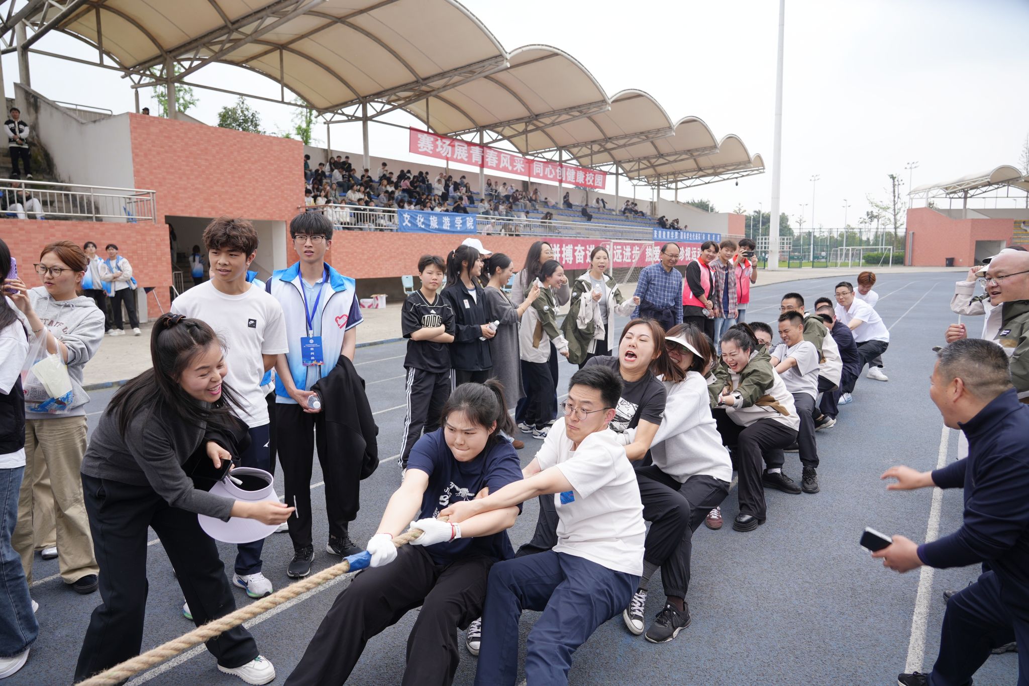 开幕式结束后,教职工运动会正式开赛,设有团体拔河、趣味接力两大集体项目,同时开展男、女组别短跑、跳远、铅球等单项赛事。老师们精神饱满、踊跃参与,在团结协作与奋力拼搏中尽显乐职教职工昂扬向上、活力满满的精神风貌。