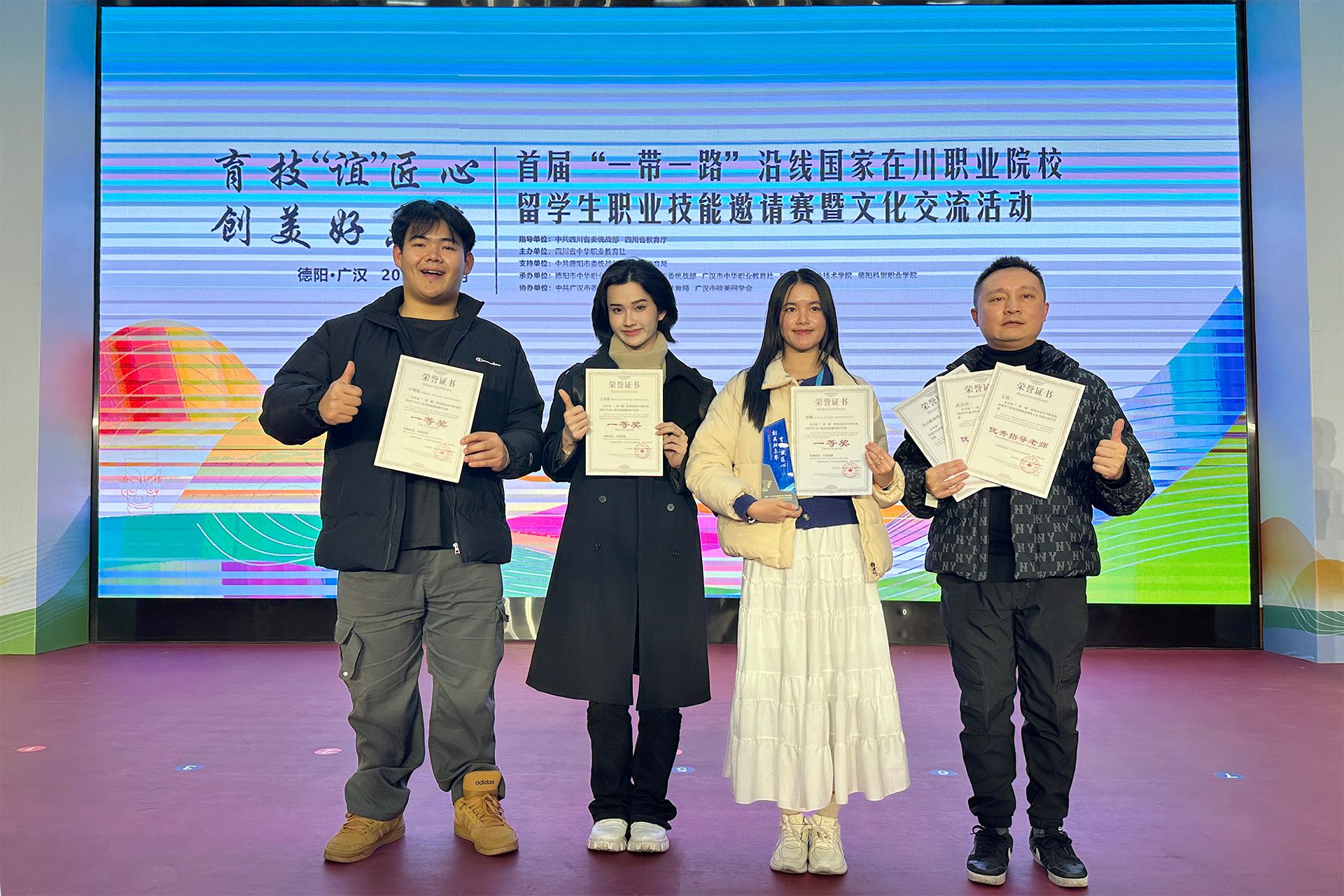 2024年12月10日,四川省首届“一带一路”沿线国家在川职业院校留学生电子商务职业技能邀请赛在四川航天职业技术学院落幕。由数字经济管理学院的三名留学生范娜(老挝)、王伟欣(老挝)和卢明伟(印度尼西亚)组成的sunbet申搏官方网站代表队荣获一等奖,学校获得组织奖。