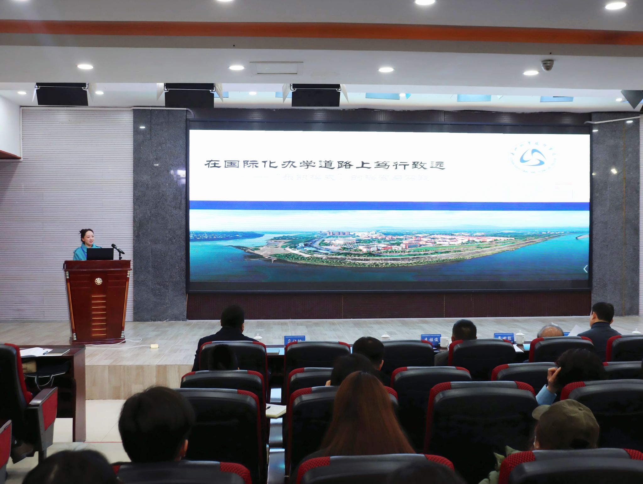 在主题经验交流环节,张晶晶以《在国际化办学道路上笃行致远——“乐职模式”的探索与实践》为题,通过介绍战略如何引领、模式如何构建、体系如何保障、品牌如何塑造四个层面,向与会人员系统展示了“乐职模式”从顶层设计到落地生根的完整闭环的国际化工作经验。