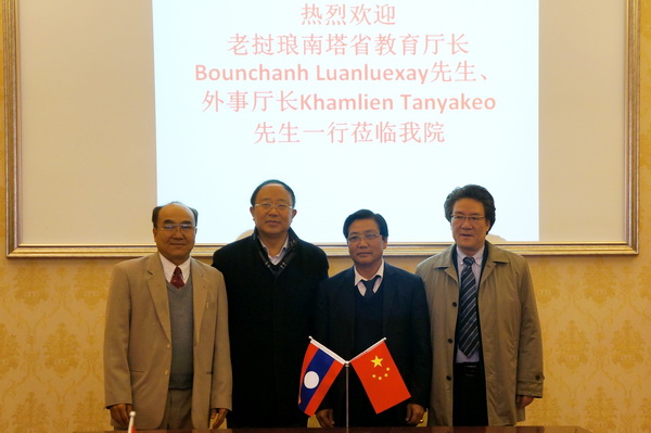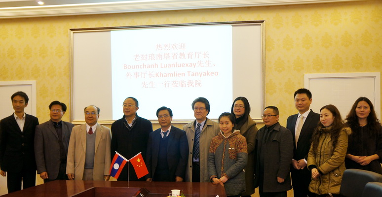 2014年2月18日老挝琅南塔省教育厅厅长本江•峦乐赛、琅南塔省外事厅厅长康连•汤亚乔,琅南塔省教育厅办公室主任同栓• 阿帕书在乐山师范学院国际合作与交流处副处长廖飞的陪同下莅临申搏官网访问。学院院长薛建平,党委副书记陈芝海,国际合作与交流处处长黄晓莉,以及相关系部和部门领导参加了会议。