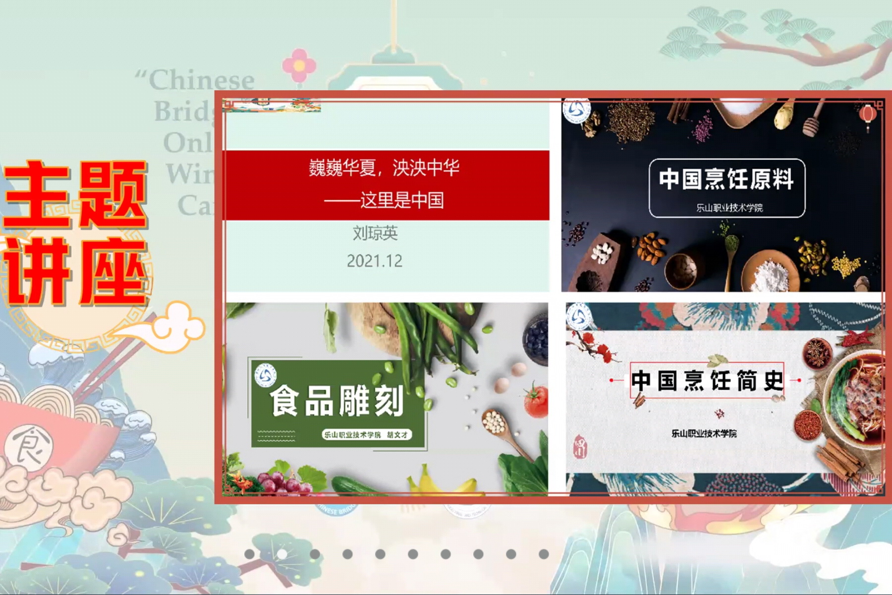 2022年1月21日北京时间上午11时,由中外语言交流合作中心主办,申搏官网承办的2021年“汉语桥”线上团组(展翅“汉语桥”中文+烹饪工艺)交流活动闭营仪式举行。学院副院长封家福、旅游系主任杨帅、基础公共课程部副主任李澍以及来自“一带一路”70名学员齐聚云端,共同见证了此次活动的完美收官。闭营典礼由教务处副处长邓盼盼主持。