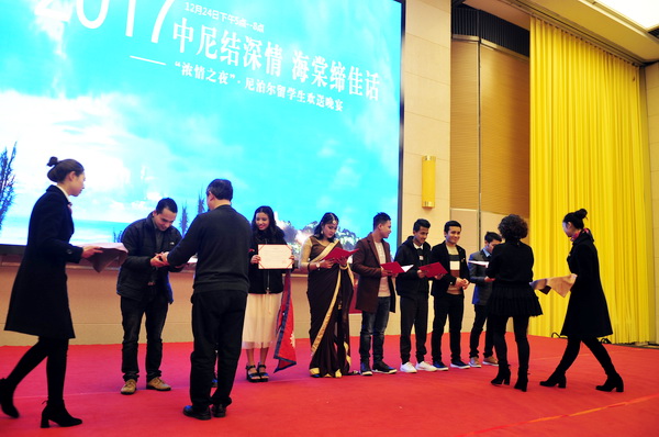 2017年12月24日下午,sunbet申搏官方网站2017届尼泊尔留学生结业典礼在乐山金海棠大酒店举行。学院院长刘忠,留学生实训酒店金海棠大酒店、峨眉世纪阳光大酒店相关负责人,学院国际合作与交流处处长黄晓莉,旅游系负总支书记谭宏出席本次典礼。 典礼开始,与会人员一起欣赏了尼泊尔留学生在乐山学习、实习和生活的纪录片。