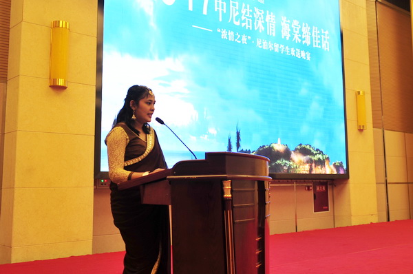 尼泊尔留学生李娜同学代表全体尼泊尔学生用中英双语发言,为大家讲述了所有留学生这九个月在sunbet申搏官方网站学习在金海棠和世纪阳光酒店实习生活的种种体会,表达了对中国快速发展的赞叹和对学院关怀教育的感谢以及对学院、对酒店的不舍之情,并表达希望有机会再次回到中国,回到乐山。