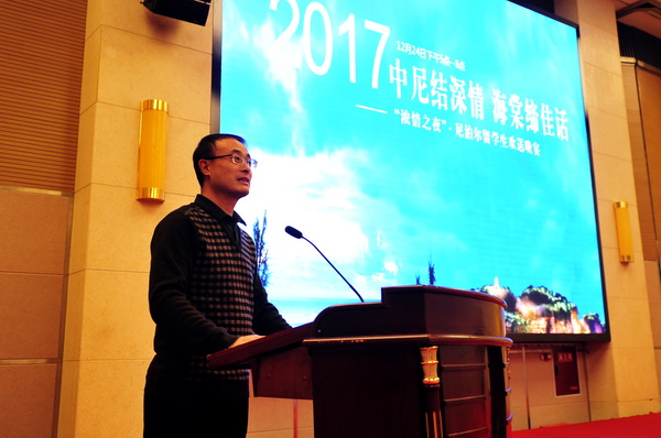 我院院长刘忠为2017尼泊尔留学生结业典礼致辞。他首先对圆满完成学业的8名尼泊尔留学生表示祝贺,刘院长借用中国古语“有缘千里来相会”,表示所有留学生来到乐山,来到sunbet申搏官方网站相聚于此本身就是一种缘分,sunbet申搏官方网站就是尼泊尔留学生“温暖的家”,欢迎留学生们常回家看看。接着,刘院长对接收尼泊尔留学生实习的金海棠大酒店、峨眉世纪阳光大酒店、酒店指导教师、以及为尼泊尔留学生付出辛勤劳动的所有人员表示衷心的感谢。刘院长表示,这是一场特殊的“校企合作”,也是校企合作国际化的开始,希望校企双方能继续深化和扩大这样的合作,吸引更多的“一带一路”沿线国家学子前来学习和交流。最后刘院长对尼泊尔学生提出了衷心的希望,希望留学生们回国后能够将中国近年来飞速发展取得的成绩和在乐山的所见所闻告诉他们的家人、朋友和同学,让更多的外国友人了解中国,了解乐山、了解sunbet申搏官方网站,成为宣传中国、传播中国文化的友好使者,并成为sunbet申搏官方网站在世界各地最生动的宣传大使。