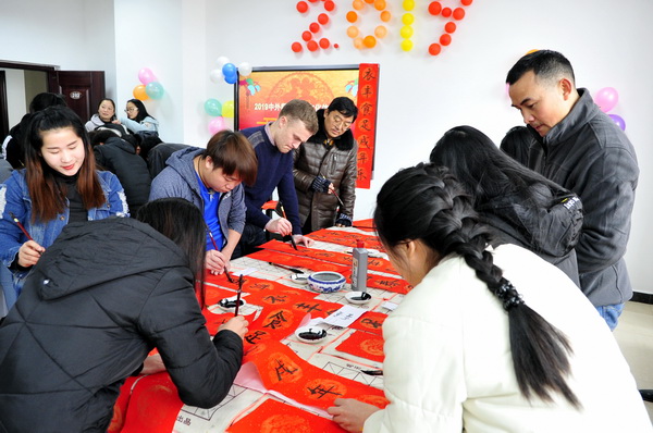 活动分为“春节风俗讲解”、“福到万家”,“红红火火写对联”、“猪福饺子”、“团团圆圆大过年”几个部分,让外籍师生身临其境感受中国农历新年的温暖和热闹。