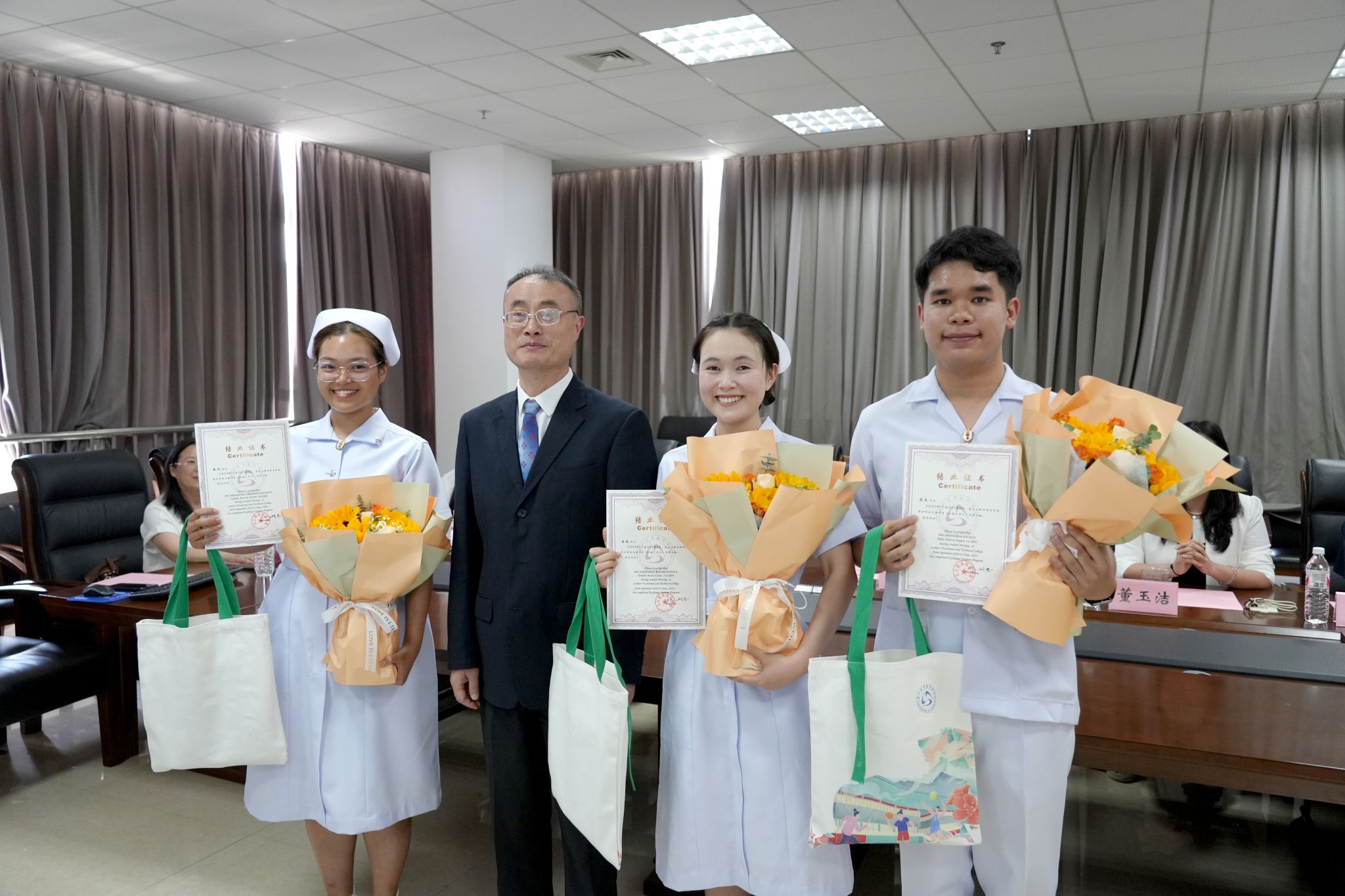 2025年6月11日下午,sunbet申搏官方网站为圆满完成一年学业的泰国交换生隆重举行结业典礼。这批分别来自泰国红十字护理学院和泰国皇家吉拉达学校的青年学子,在护理康养学院与数字经济学院接受了系统培养,成为中泰教育合作与人文交流的生动实践者。