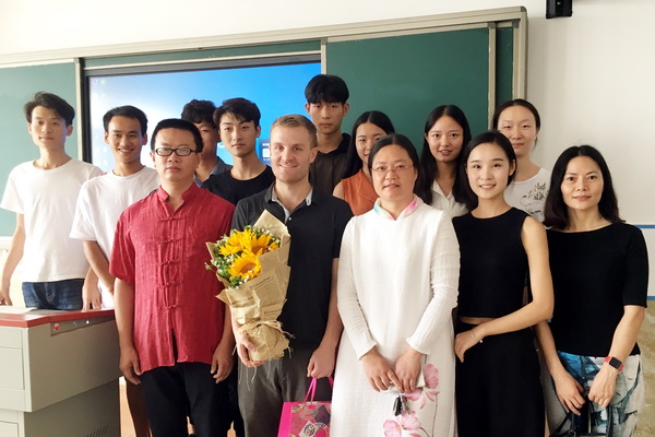 9月8日下午,为庆祝即将到来的第33个教师节,学院党委副书记、纪委书记陈芝海在学院国合处、旅游系负责人及相关工作人员陪同下到新校园慰问了刚下课的外籍教师威廉姆(William Andrew Driggers)。 陈芝海副书记询问并了解了外教在学校的工作、生活情况及相关需求,对外教的辛勤工作表示了感谢。外教威廉姆对学院领导的关心表示了感谢,并表示他对学院的工作安排、生活条件和人文关怀非常满意,愿为学院人才培养贡献自己的力量。最后,陈芝海副书记代表学院向外籍教师赠送了鲜花和节日慰问礼品。